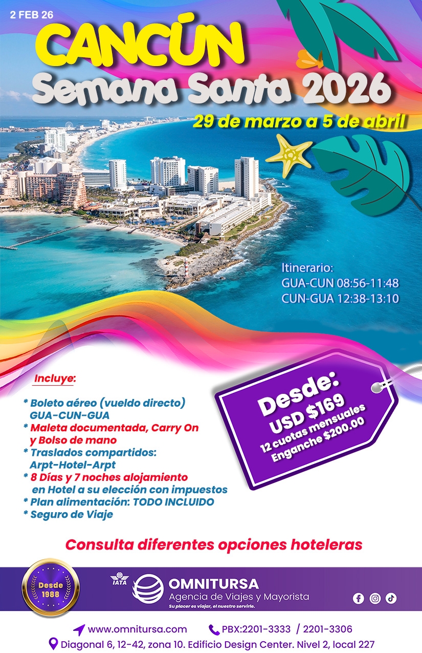 Planifica con tiempo tu Semana Santa 2026, tenemos salidas de 1 semana y de 5 días y 4 noches, GARANTIZADAS, diferentes opciones de hoteles.